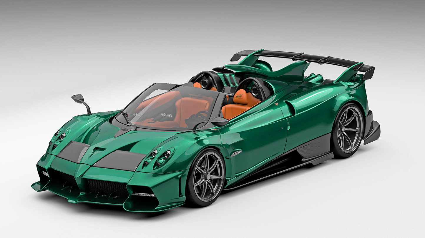 Pagani Automobili presents the Imola Roadster, an open-top developed to take the greatest mechanical and aerodynamic technology to the open road and guarantee uncompromising performance. Its bold lines are inspired by the Huayra R, the Hypercar created for sole track use. The Imola Roadster is the result of sophisticated research into aerodynamic air flows and body forms to increase downforce in every driving condition. The Pagani V12 engine has been further enhanced: 850 HP at 5,600 rpm and 1,100 nm of torque from 3,600 to 5,600 rpm. It includes all of Pagani’s passion, elegance, and cutting-edge technology in just 1,260 kg (2,776.67 lb).